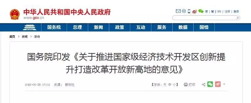 《国务院关于推进国家级经济技术开发区创新提升打造改革开放新高地的意见》国发〔2019〕11号